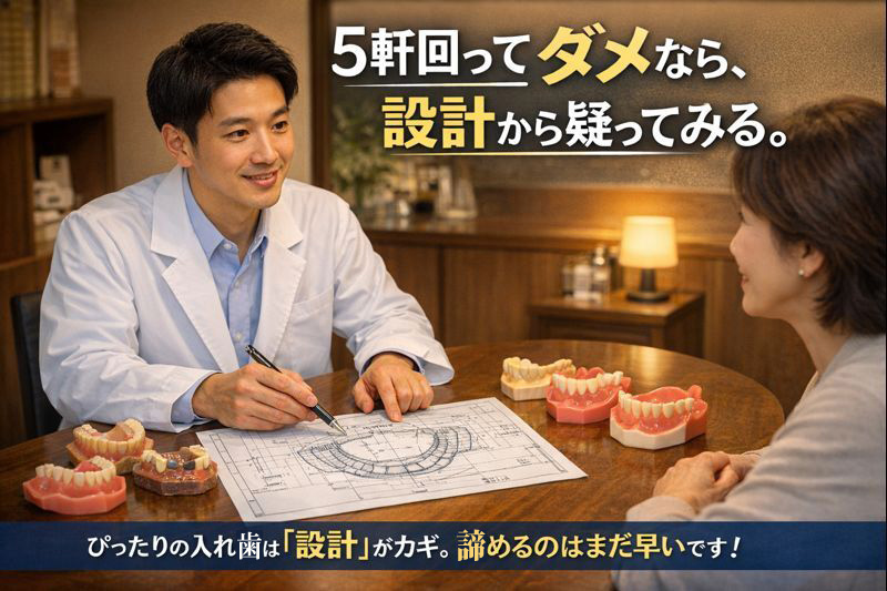 なぜなら、問題は「表面の当たり」ではなく、入れ歯の「構造そのもの(設計)」にあるからです。